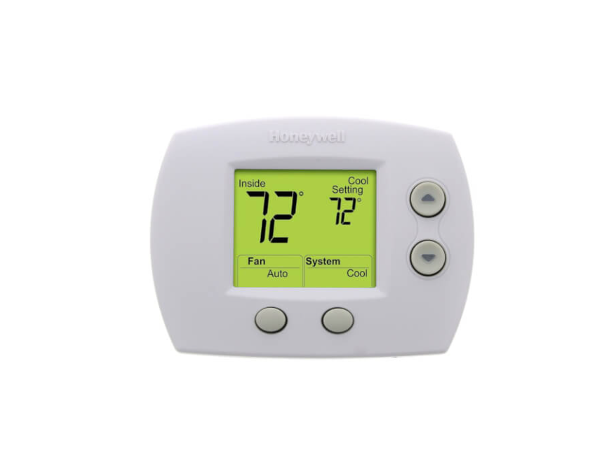 Large Screen Premier White Heating & Cooling Thermostat with R, Rc, C, W (O/B), Y, G terminals. The FocusPRO non-programmable digital thermostat provides electronic control of 24 Vac conventional and heat pump systems or 750 mV heating systems.